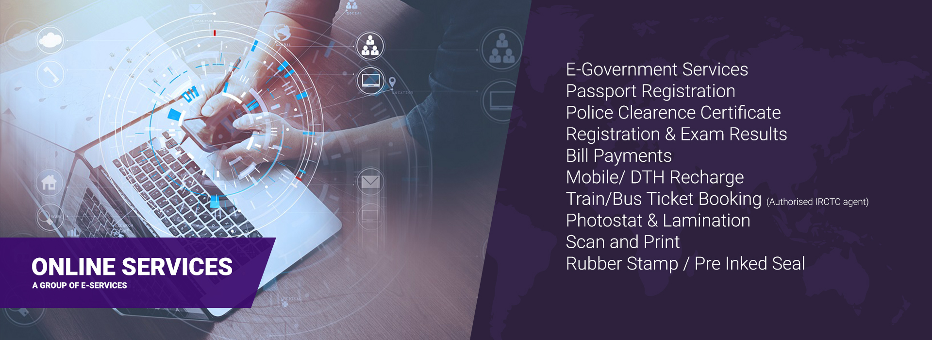 At Axiom Services, we provide all type of online services including E-government services, Passport registration, Police clearence certificate, Train ticket and bus ticket booking (Authorised IRCTC agent) etc.